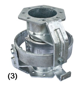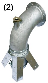 La cabeza central de los pivotes circulares esta fabricada con codo y tubo de prolongación de gran espesor, encamisado en un tubo de guía al cual están soldadas las cuatro patas de anclaje. Asi mismo, esta provisto de un racord para la salida del tubo de sujeción del colector, totalmente hermético por medio de un prensaestopas.