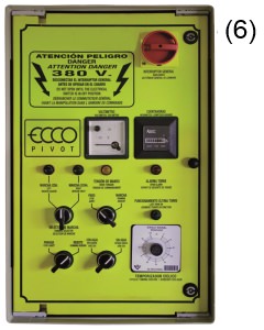En todos los tipos de máquinas fabricadas por ECCO PIVOT los elementos eléctricos que componen los cuadros de control son de primera calidad y van montados en el interior de un armario de poliéster reforzado con fibra de vidrio (IP-55), que lo hace totalmente estanco e inalterable a los agentes atmosféricos, impidiendo la oxidación y la corrosión que se produce en otro tipo de cuadros fabricados con chapa metálica.